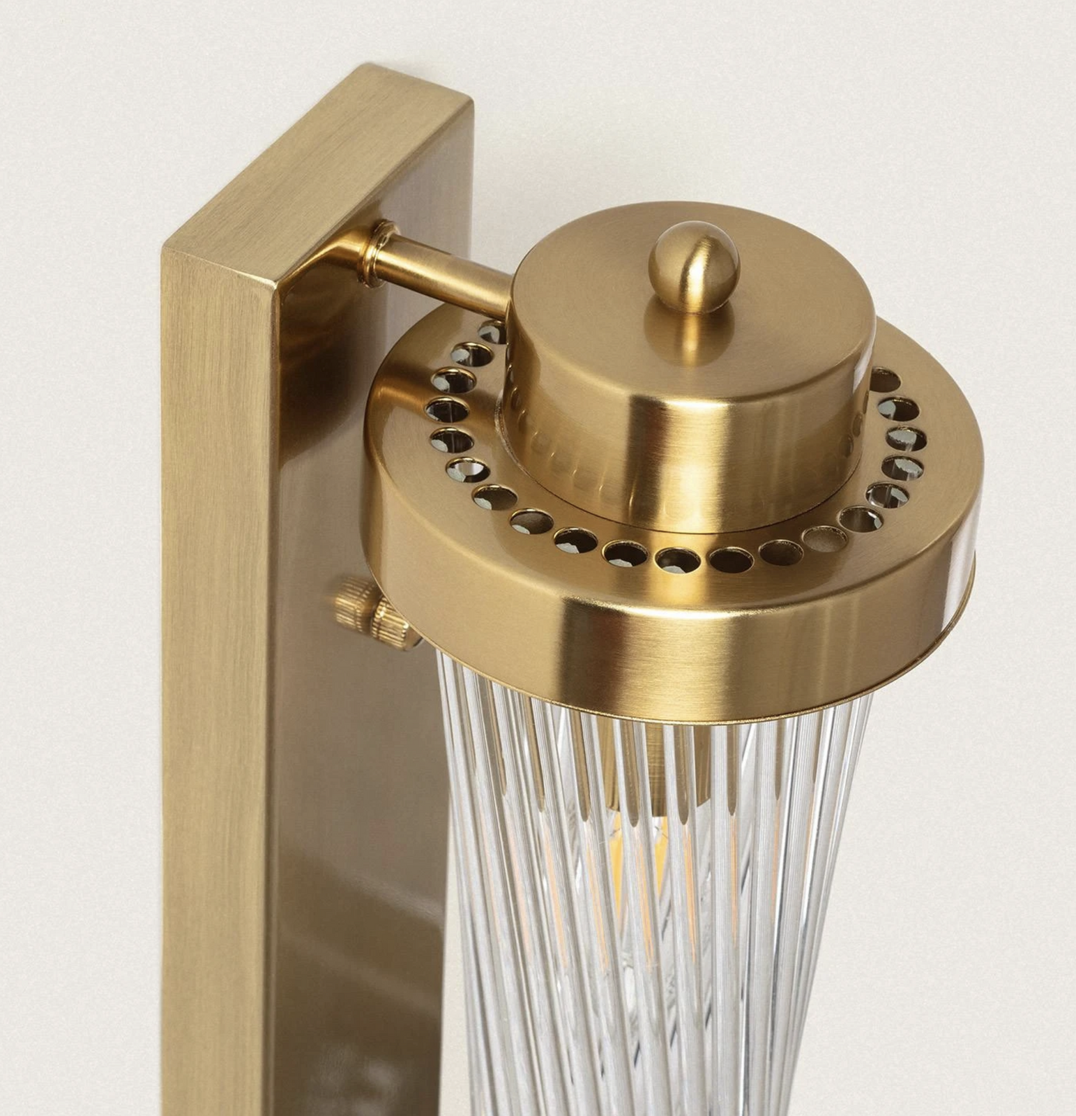 Kinkiet ścienny ryflowany z Metalu i Szkła MARSEN 2xE14 złoty