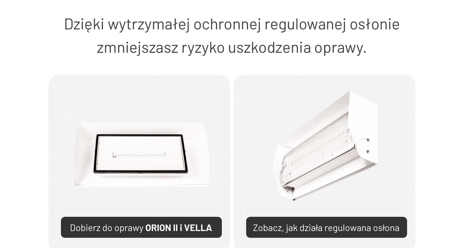 ,Regulowana osłona ochronna do opraw ORION II / VELLA. Dzięki wytrzymałej ochronnej regulowanej osłonie zmniejszasz ryzyko uszkodzenia oprawy.