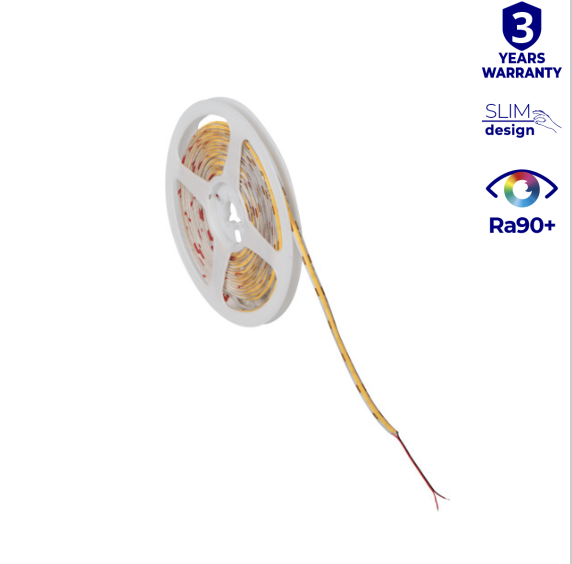 ,Taśmy LCOB S 8W/m mają tylko 5 mm szerokości, dzięki czemu idealnie mieszczą się w wąskich szczelinach. Tworzą jednolitą linię światła bez widocznych punktów świetlnych. Dostępne w barwach 3000K, 4000K i 6500K oraz wersjach IP00 i IP65, świetnie sprawdzają się w oświetleniu wnęk i mebli. Zasilanie 24V, CRI 90, rolka 5 m i 3-letnia gwarancja gwarantują efektywne i niezawodne działanie.