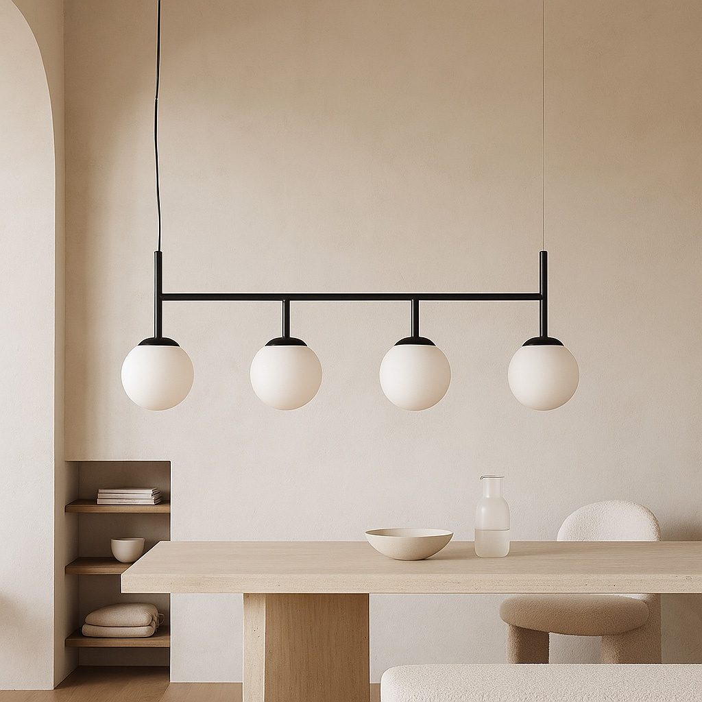 Wydłużona lampa z czterema kloszami - idealna nad stół