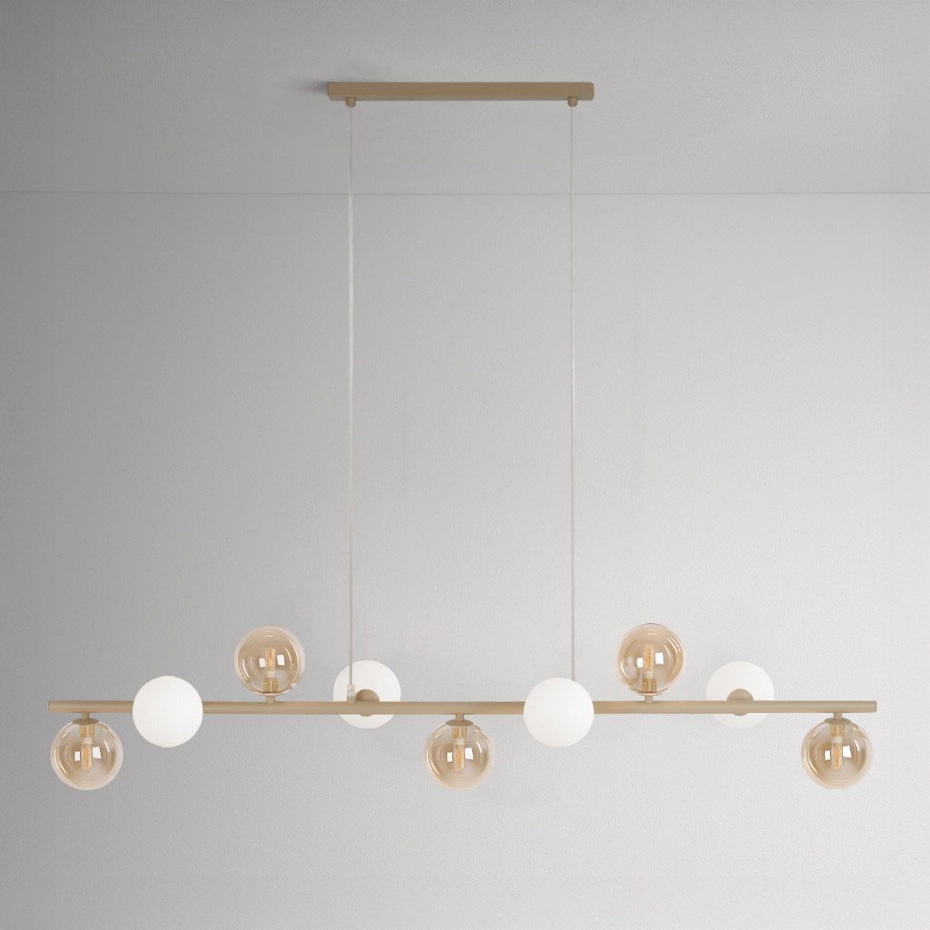 Lampa wisząca kule mleczne bursztynowe 9xG9 K-5848 z seri LEMO