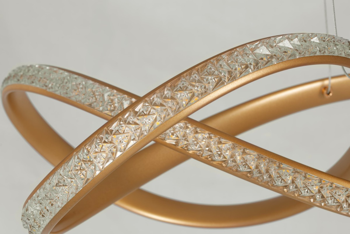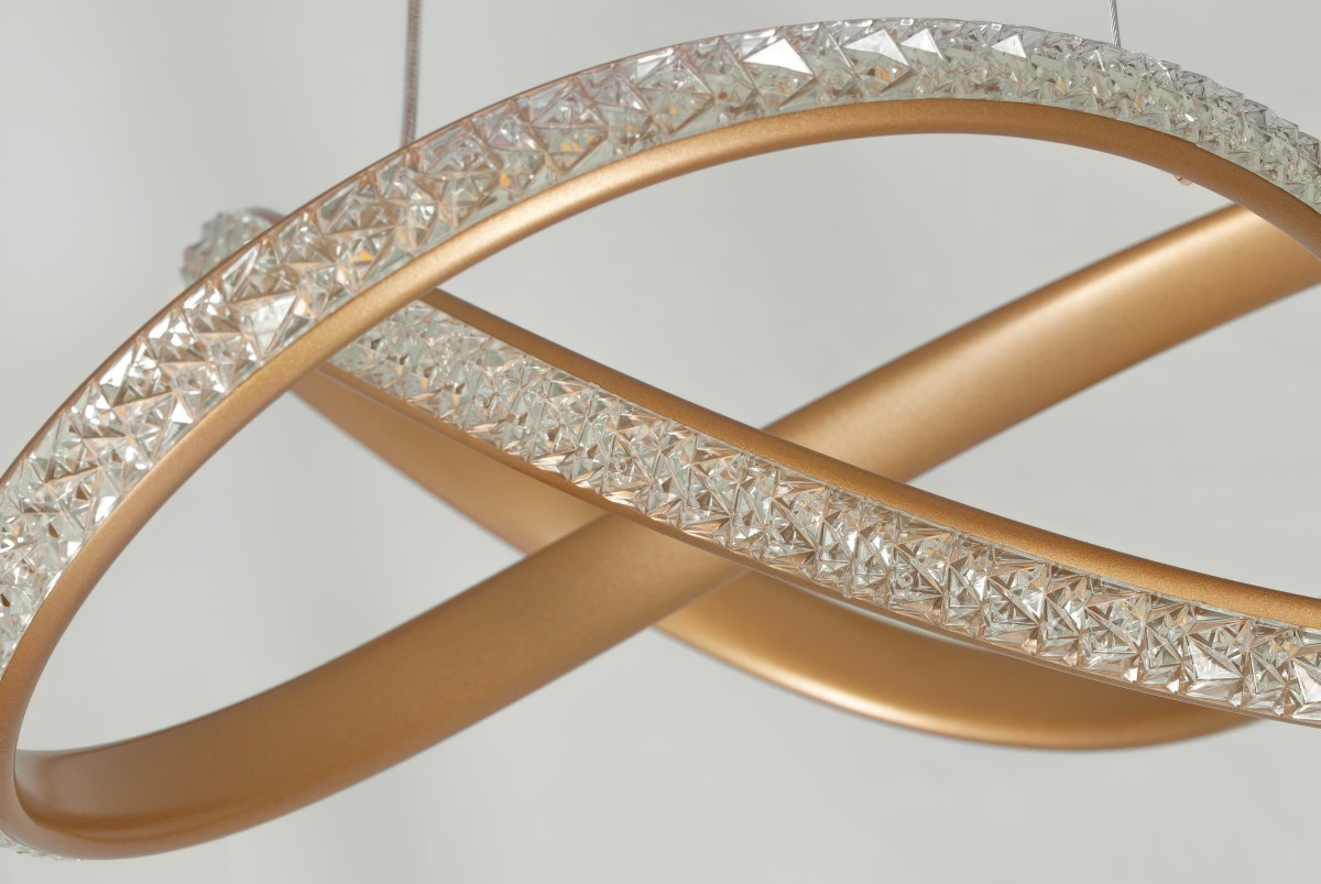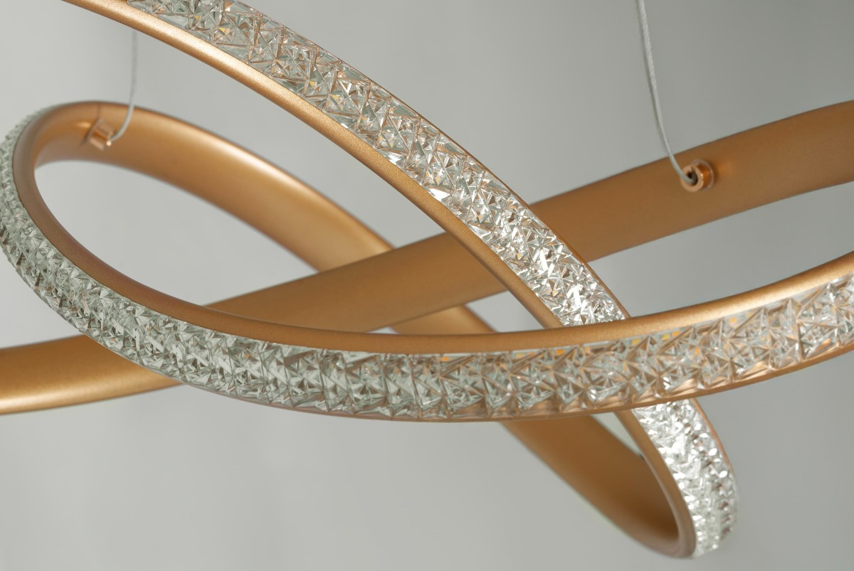 Nie trzeba być projektantem wnętrz, by wiedzieć, że dodatki w kolorze złotym od razu wnoszą do przestrzeni nutę luksusu i prestiżu. K-8237 z serii FONDI to przykład oświetlenia, które staje się nie tylko funkcjonalnym elementem, ale również ozdobą i centralnym punktem aranżacji. Jej intrygująca forma – przypominająca nowoczesną, splecioną wstęgę – sprawia, że lampa przyciąga spojrzenia od pierwszej chwili. Doskonale komponuje się zarówno z jasnymi, minimalistycznymi wnętrzami, jak i z aranżacjami glamour, gdzie złoto harmonijnie łączy się z eleganckimi tkaninami czy szkłem. Możesz ją zawiesić nad stołem w jadalni, w reprezentacyjnym salonie, a nawet w przestronnym holu – wszędzie tam, gdzie chcesz wprowadzić efekt wow. A jeśli preferujesz bardziej surowy charakter, w tej samej serii znajdziesz również wersję w kolorze czarnym.