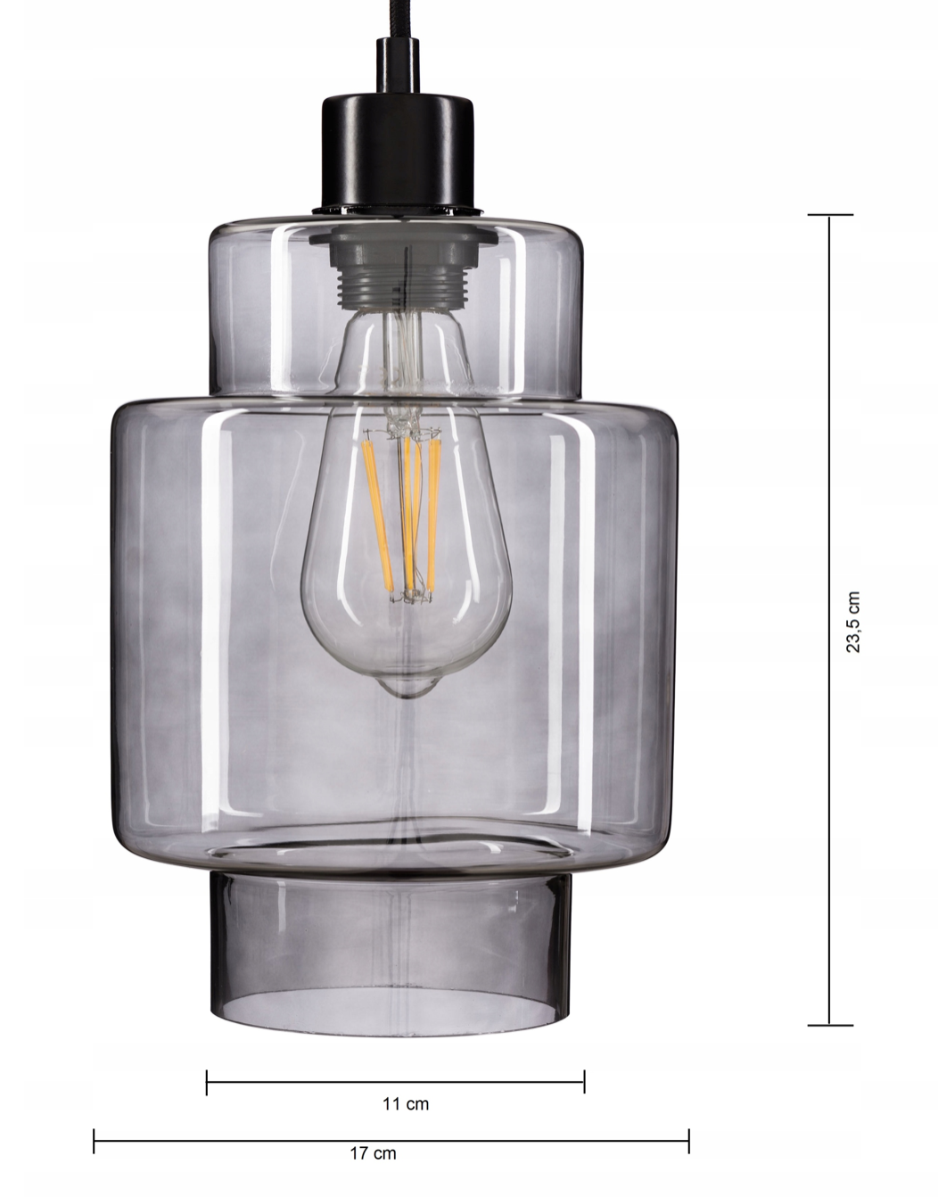 Szklana lampa wisząca grafitowa E27 nowoczesna