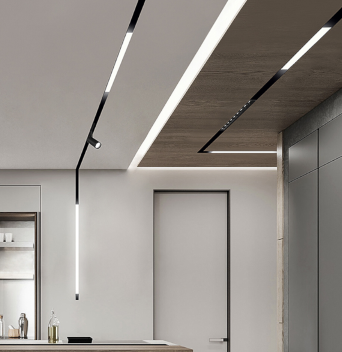Lampy MAGNETIC TRACK to oryginalne i niezwykle funkcjonalne oświetlenie szynowe, przeznaczone do nowoczesnych wnętrz. Jego największym atutem jest różnorodność i komplementarność, pozwalająca na stworzenie całkowicie spersonalizowanego systemu oświetleniowego w pomieszczeniu. W skład kolekcji wchodzą belki z diodami LED oraz lampa LED w formie zwisu o regulowanej długości i praktyczne reflektorki. Poszczególne elementy montowane są na ścianach oraz suficie za pomocą czarnych szyn natynkowych lub podtynkowych oraz łączników, a zestaw dopełniają dedykowane zasilacze. Cała seria produktów występuje w kolorze czarnym. Oryginalne linie świetlne w połączeniu z białymi ścianami i sufitem stworzą niezwykle ciekawy efekt. Mnogość elementów montażowych pozwala na dowolność ich łączenia, a w konsekwencji daje możliwość tworzenia ciekawych rozwiązań, dostosowanych do specyfiki wnętrza i jego kubatury. Jej dużym atutem jest również niezwykła trwałość i wytrzymałość, co jest zasługą zastosowania przez producenta najwyższej jakości aluminium.