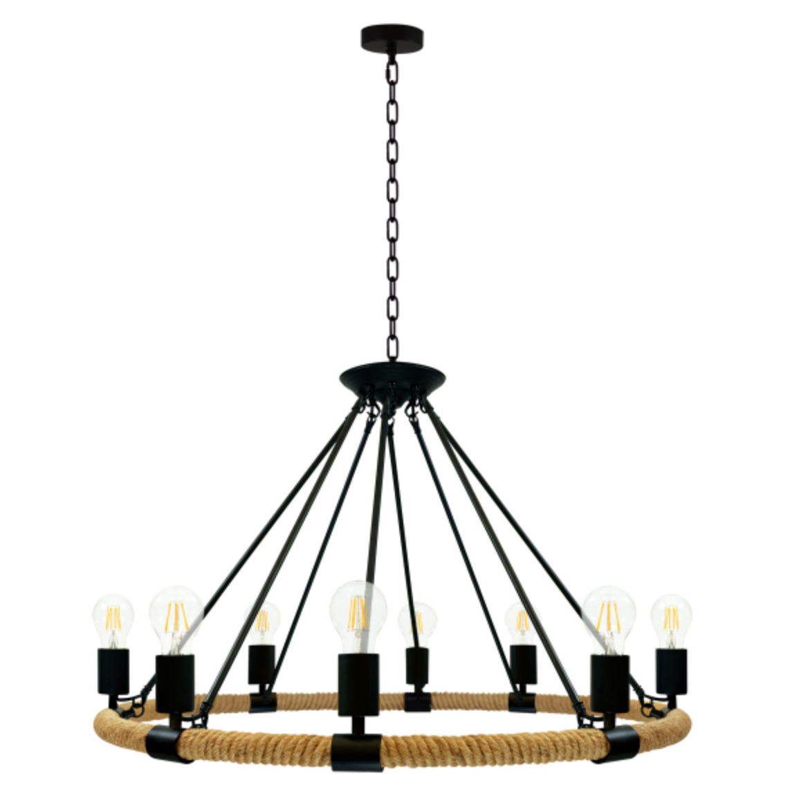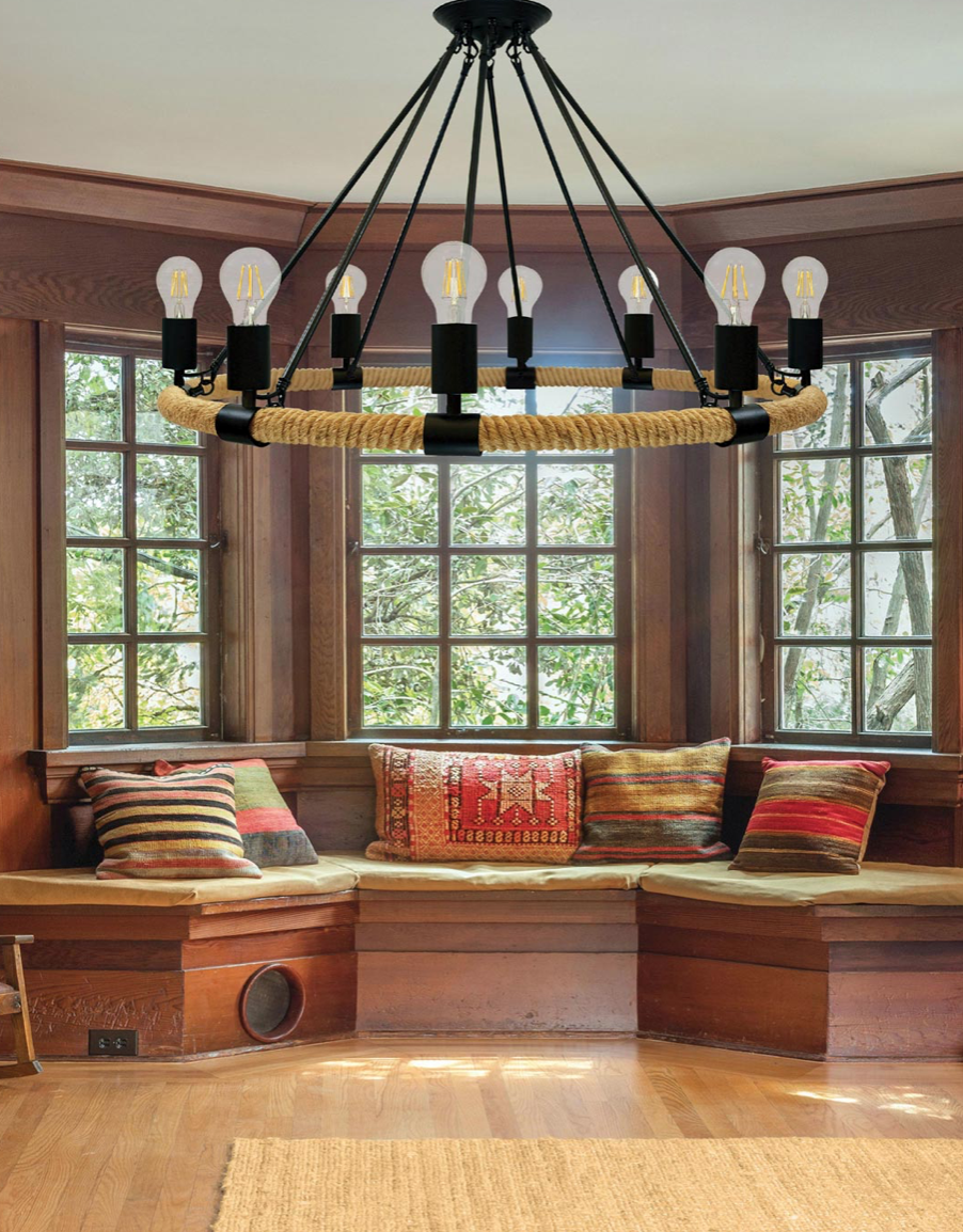 ,Oprawa wykonana ze sznura konopnego w kolorze beżowym. Sprawdzi się w przytulnych pokojach, romantycznych sypialniach czy designerskich lokalach komercyjnych. Prezentowana lampa posiada miejsce na osiem źródeł światła, a jej wysokość można regulować na przewodzie, dzięki czemu można dopasować ją do różnego typu pomieszczeń. Lampa idealnie pasuje do: pokoju dziennego, młodzieżowego, salonu, jadalni, kuchni czy gabinetu, a dzięki swojemu designowi idealnie wtapia się w rustykalne i loftowe wnętrza..