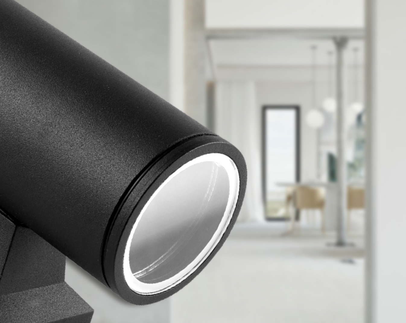 ,Kinkiet posiada szklaną przesłonę, która rozprasza światło i chroni żarówki przed czynnikami zewnętrznymi. Wyposażony w gniazdo GU10. Nowoczesny wygląd i skuteczność świetlna sprawiają, że ta ścienna lampa zewnętrzna doskonale sprawdzi się jako oświetlenie budynków, tarasów, wejść itp. zarówno użyteczności publicznej jak i mieszkalnych, nadając im niepowtarzalnego wyglądu.