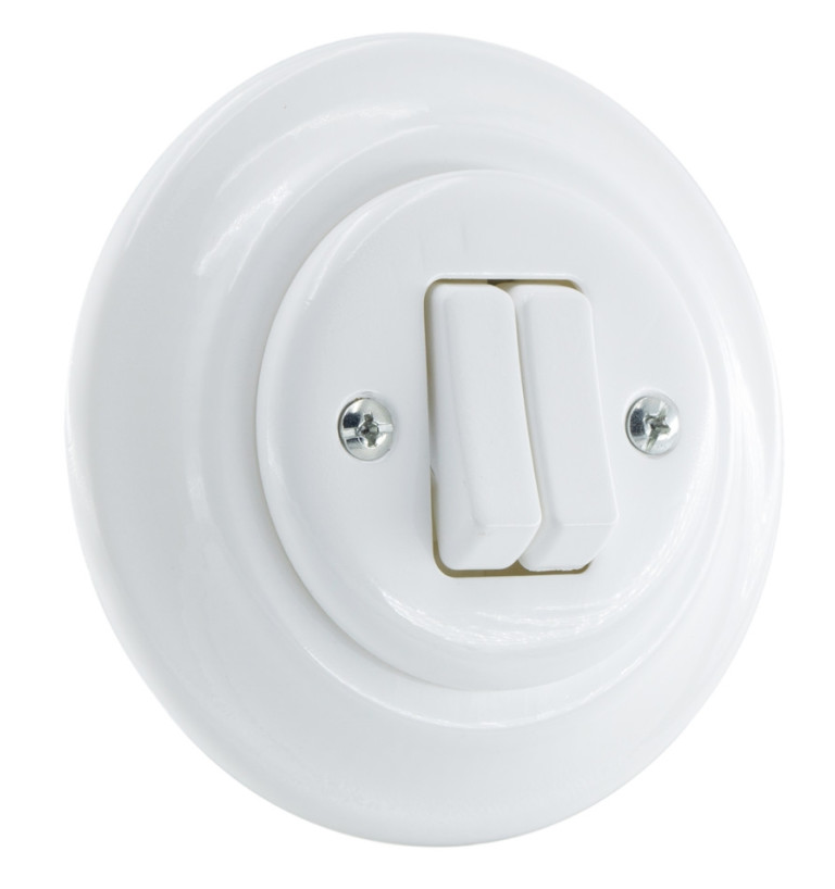 Włącznik ceramiczny podwójny podtynkowy biały Retro