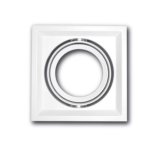 Oprawa sufitowa biała przeznaczona dla żarówek typu AR111. Prosty kształt sprawia, że pasuje do każdego wnętrza. Wykona ze stali, pomalowana na kolor biały. Dostępna również w wersji okrągłej. Oprawa przystosowana do otworu montażowego o średnicy 170mm. Nie zawiera gniazda i źródła światła w komplecie.