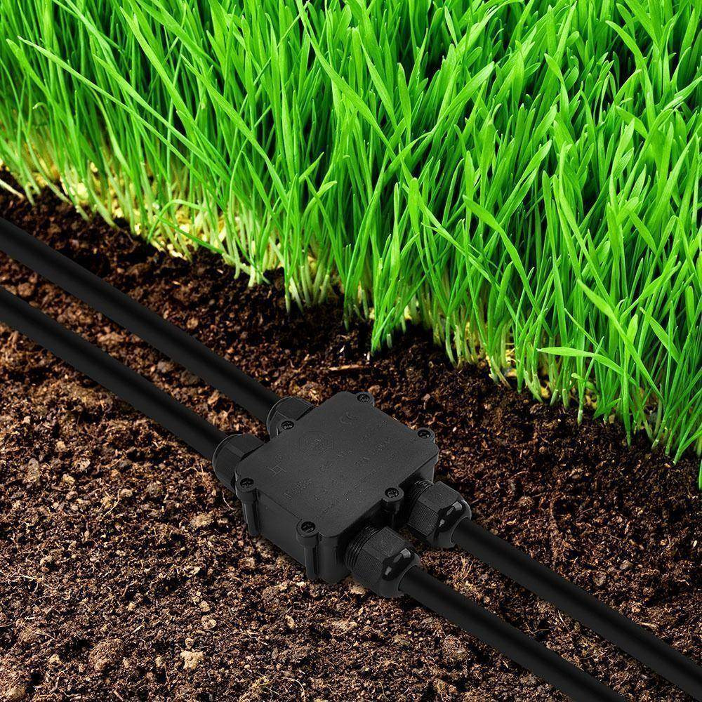 ,Hermetyczna puszka kablowa ułatwia montaż zewnętrznych lamp LED oraz szczelne łączenie czterech przewodów ziemnych. Skręcane elementy z uszczelkami zaciskają się na kablu - klasa szczelności IP68. Średnica przewodu od 8 do 12 mm, wewnątrz puszki kostka elektryczna 4x 2,5 mm. Obudowa koloru czarnego wykonana z polipropylenu.
