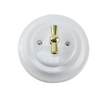 Włącznik ceramiczny obrotowy podtynkowy świecznikowy biały ze złotym pokrętłem