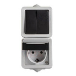 Włącznik podwójny natynkowy z gniazdem zasilającym TEKNO IP54 szary